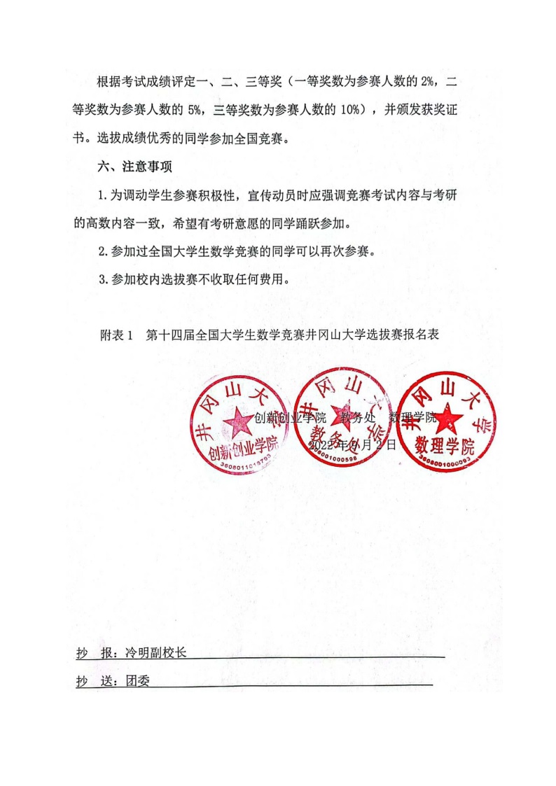 关于组织学生参加第十四届全国大学生数学竞赛校内选拔赛的通知.doc