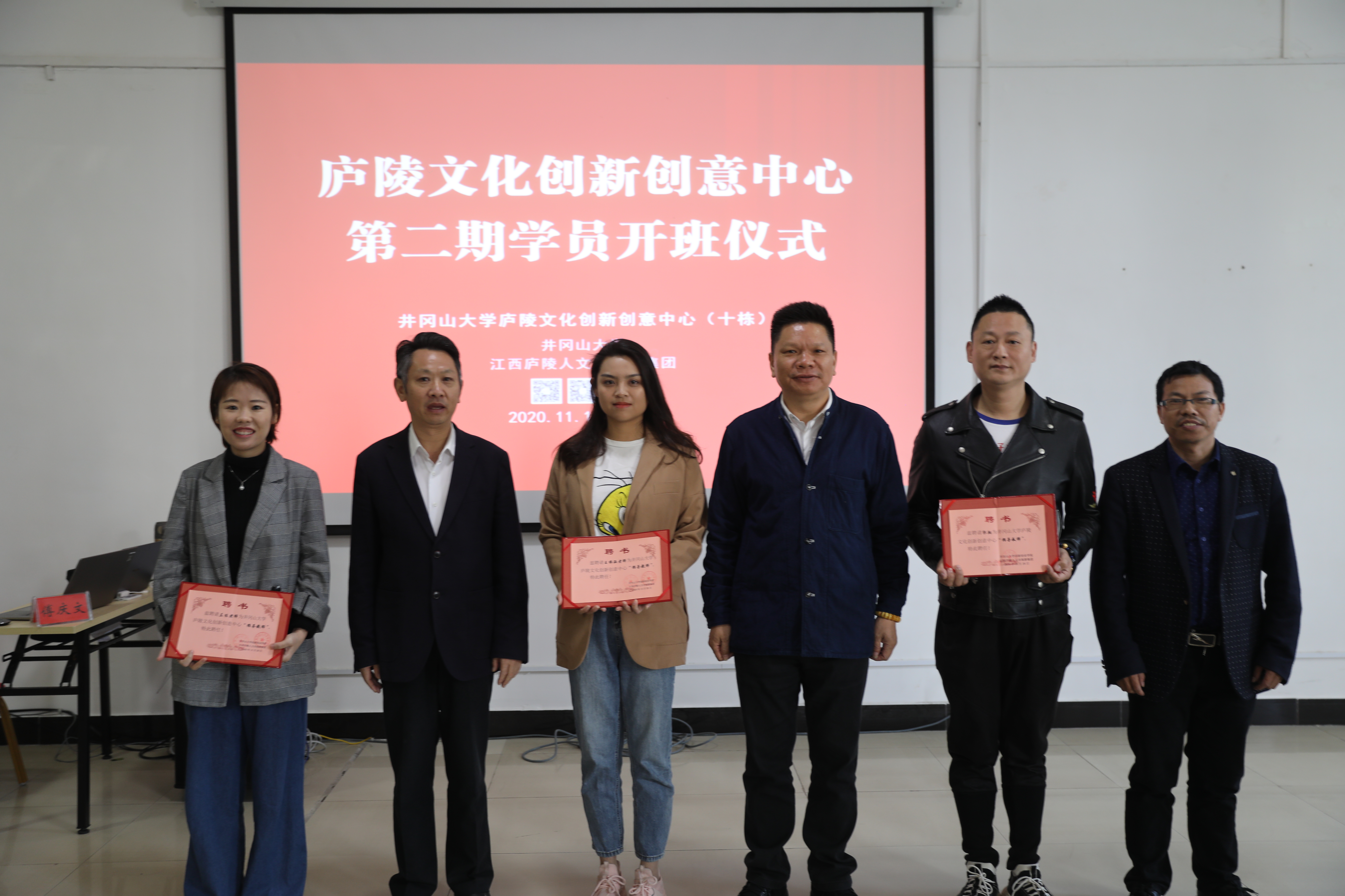 2020年11月14日上午,庐陵文化创新创意中心第二期学员开班仪式在井冈山大学“众创空间”隆重举行。江西庐陵人文谷旅游集团陈万洵董事长出席开班仪式并为学员讲授了开班第一课,创新创业学院王文峰院长等以及部分指导教师一同出席了开班仪式。参加开班仪式有庐陵文化创新创意中心第二期全体学员共48人。