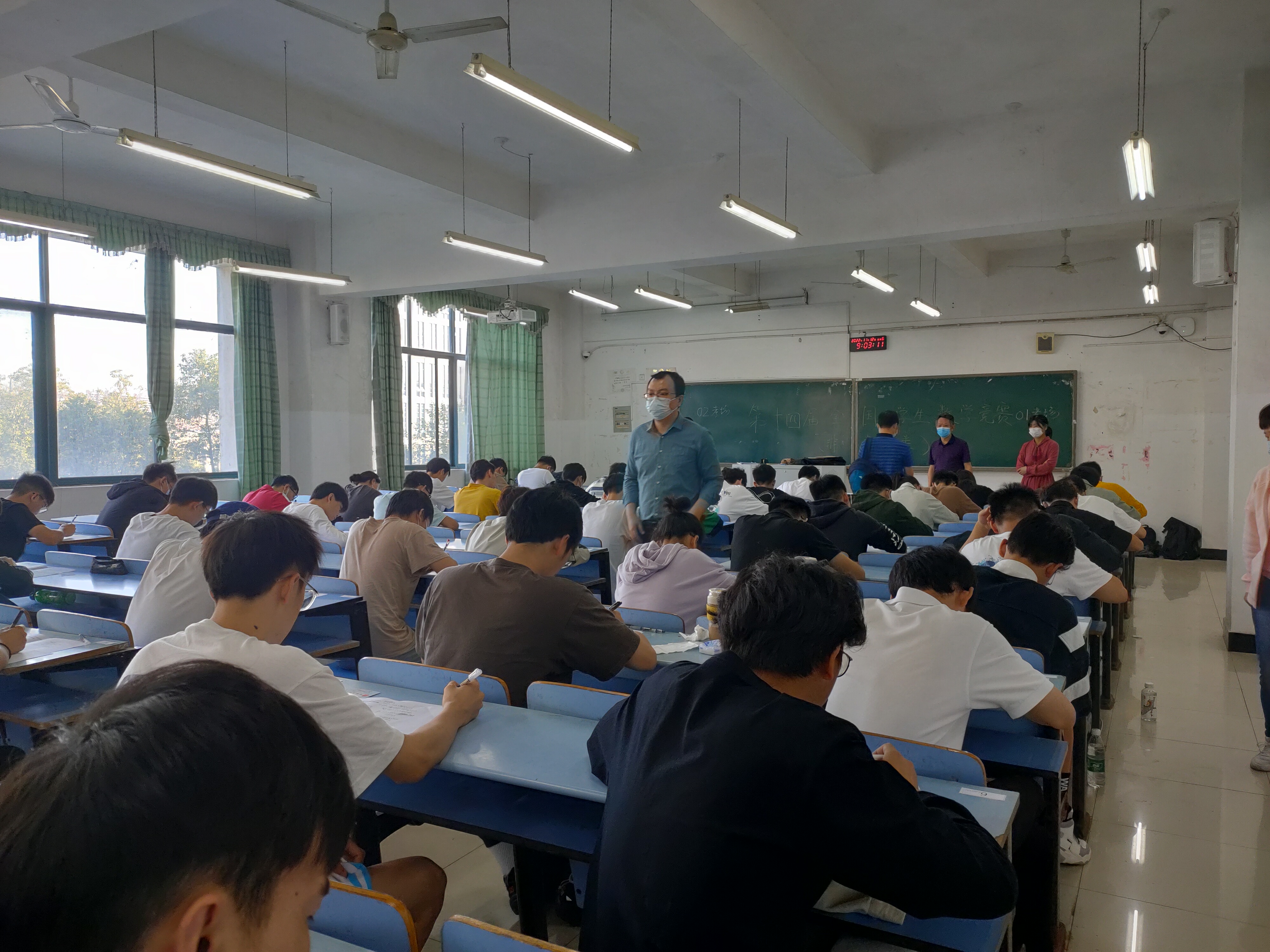 为激励大学生学习数学的兴趣,培养他们分析问题、解决问题的能力,提升我校人才培养质量,促进学校数学课程建设,实现以赛促学,以赛促教,助力师生共成长。2022年11月12日上午,我校组织76名学生在校参加了第十四届全国大学生数学竞赛江西赛区初赛暨国赛选拔赛,其中数学专业类26名和非数学专业类50名,创新创业学院负责人和数理学院负责人陪同省巡考人员巡视了考场。