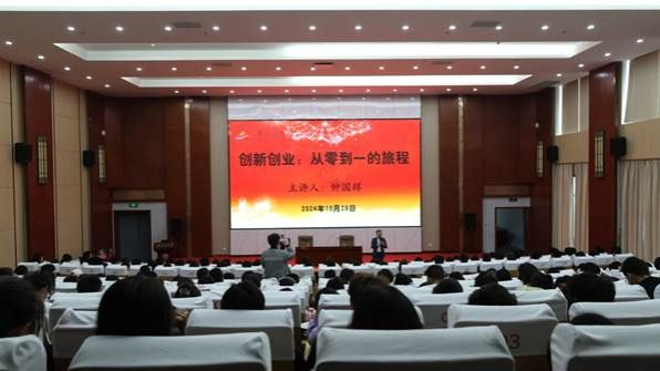 10月28日是我校校庆日,为更好地引导刚入校的学生全面认识创新创业,以便同学们有针对性培养自身的创新意识、创业精神和创新创业实践能力,创新创业学院邀请到德勤中国合伙人、井冈山大学广州校友会会长钟国辉校友为2024级新生作“创新创业:从零到一的旅程”的创新创业报告。2024级新生和各创业孵化项目的团队成员近350人到场聆听了报告。