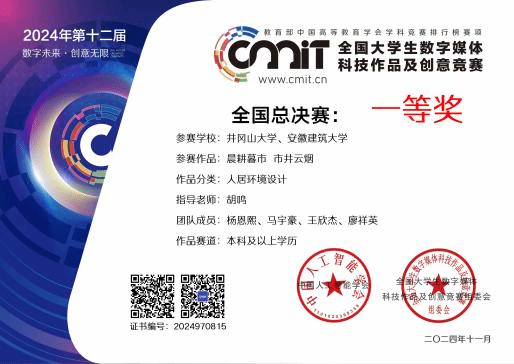 其中,作品《油茶智采先锋》(机电学院学生:曹泽阳、罗晶、徐梦琪,指导老师:刘朝晖、肖石华)获智能产品设计赛道一等奖;作品《辰耕暮市 市井云烟》(建工学院学生:杨恩熙、马宇豪、王欣杰、廖祥英,指导老师:胡鸣)获人居环境设计赛道一等奖;作品《DYNAMISM健身俱乐部》(建工学院学生:熊薇,指导老师:朱松)获人居环境设计赛道二等奖。